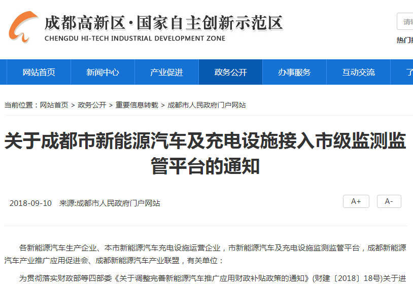 成都市新能源汽车推广应用工作推进小组办公室发布了《关于成都市新能源汽车及充电设施接入市级监测监管平台的通知》,要求相关企业将销售至成都市的新能源汽车、本市运营的充电设施接入平台。接入时间安排:原有已上牌的车辆和已投入运营的充电设施的接入时间为2018年9月10日至 [详细]