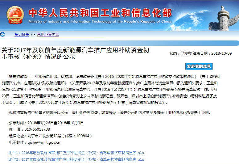 工信部公布17年及以前新能源汽车补助资金 50.9亿补贴