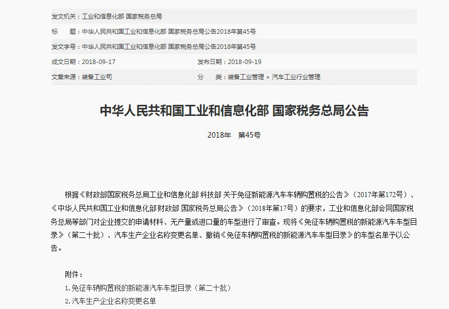 9月19日,工信部发布《免征车辆购置税的新能源汽车车型目录(第20批)》,97款新能源乘用车车入选,包括85款纯电动乘用车型和12款插电式乘用车型,比亚迪、上汽、通用、福特等车企都有多款车型进入。中国从2001年开始征收汽车购置税,税率为10%。为鼓励新能源汽车发展,2014年8 [详细]