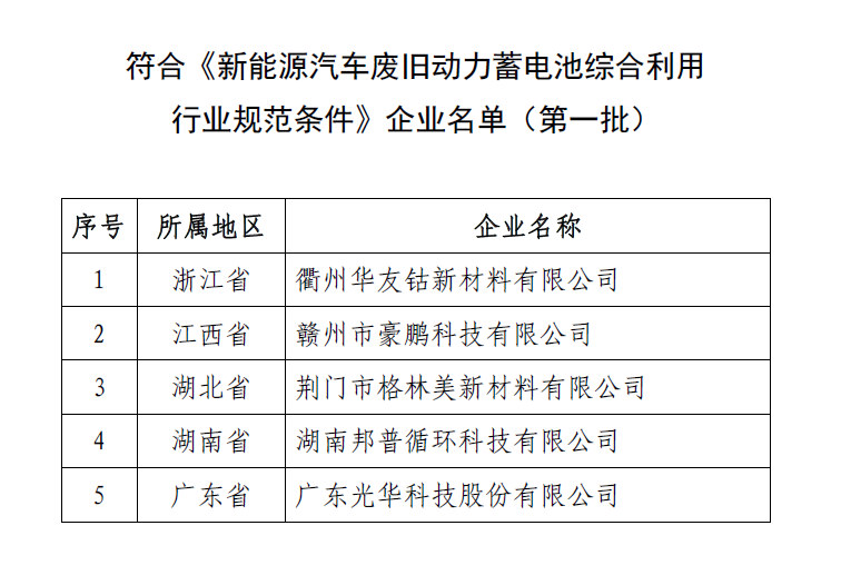 工信部:第一批符合《新能源汽车废旧动力蓄电池综合利