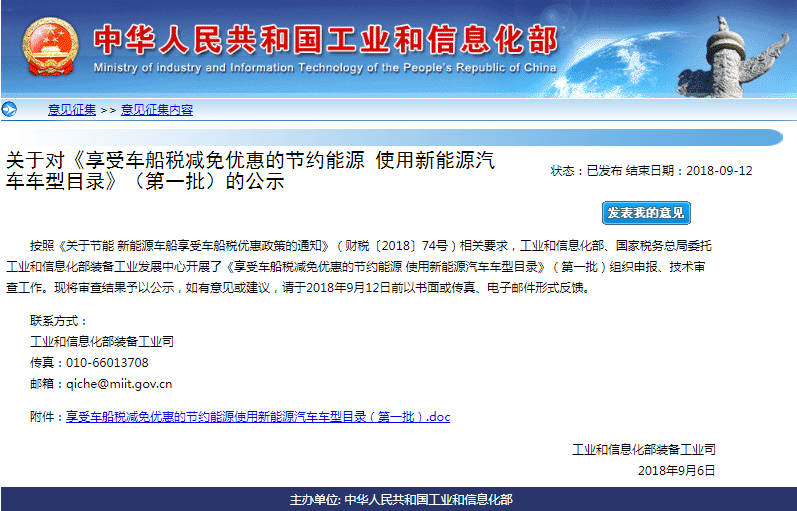 工信部公示首批享受车船税减免优惠的新能源汽车目录