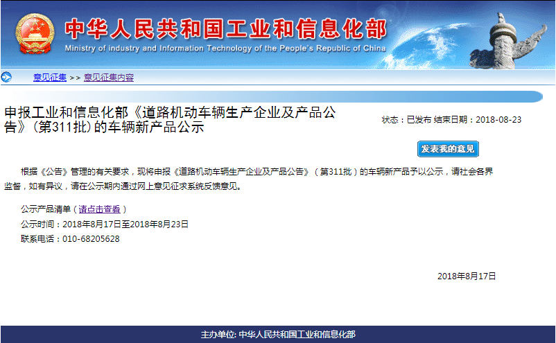 2018年8月17日,工业和信息化部在官方网站公示了申报第311批《道路机动车辆生产企业及产品公告》(以下简称《公告》)新产品,公示期7天,截止到8月23日。 申报本批《公告》新产品的汽车、摩托车、低速汽车生产企业共计576户,其中汽车生产企业525户、摩托车生产企业50户、低速 [详细]