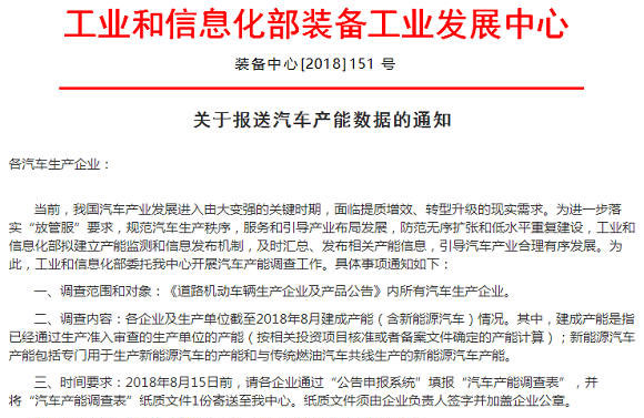 8月1日,工信部发布通知,要求对各企业及生产单位报送截至2018年8月建成产能(含新能源汽车)情况。其中,建成产能是指已经通过生产准入审查的生产单位的产能(按相关投资项目核准或者备案文件确定的产能计算);新能源汽车产能包括专门用于生产新能源汽车的产能和与传统燃油汽车 [详细]
