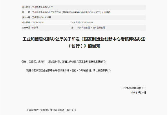 工信部印发国家制造业创新中心考核评估办法
