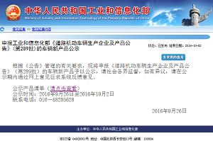 2017年5月2日,工业和信息化部在官方网站发布了第295批《道路机动车辆生产企业及产品公告》。申报本批《公告》的汽车、摩托车、低速汽车生产企业共计640户,新产品共计3418个。 [详细]