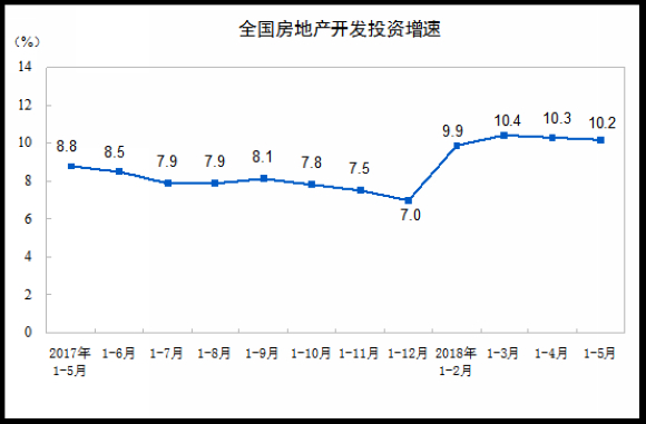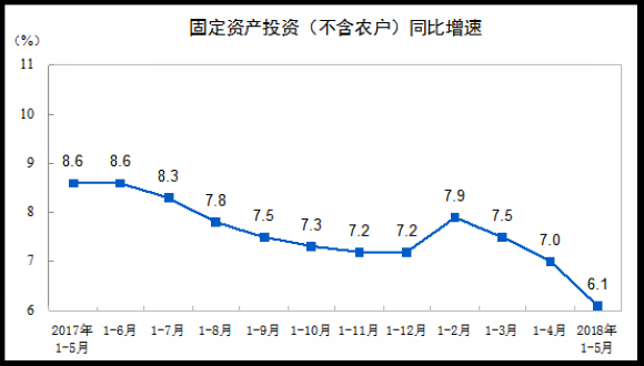 2018年1-5月份全国固定资产投资(不含农户)增长6.1%