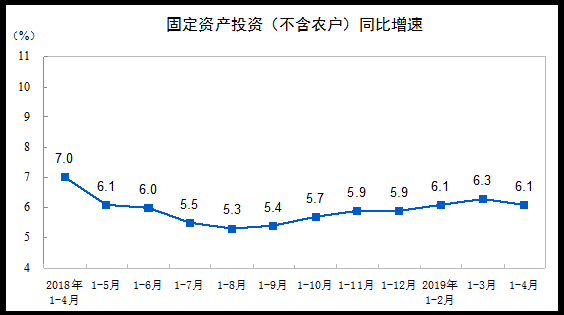 2019年1—4月份全国固定资产投资(不含农户)增长6.1%