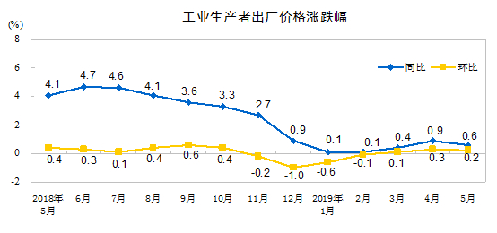 2019年5月份工业生产者出厂价格同比上涨0.6%