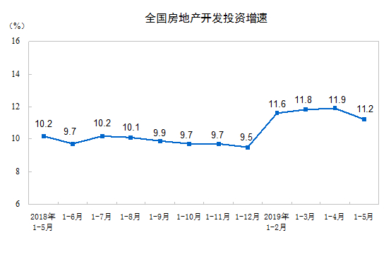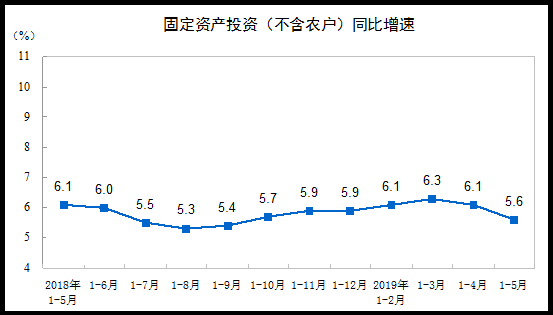 2019年1—5月份全国固定资产投资(不含农户)增长5.6%