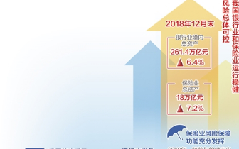中国银保监会11日举行发布会,银保监会统信部副主任刘志清通报了2018年银行业、保险业的经营和运行情况。据初步统计,2018年12月末,银行业境内总资产261.4万亿元,同比增长6.4%;保险业总资产18万亿元,同比增长7.2%。 [详细]
