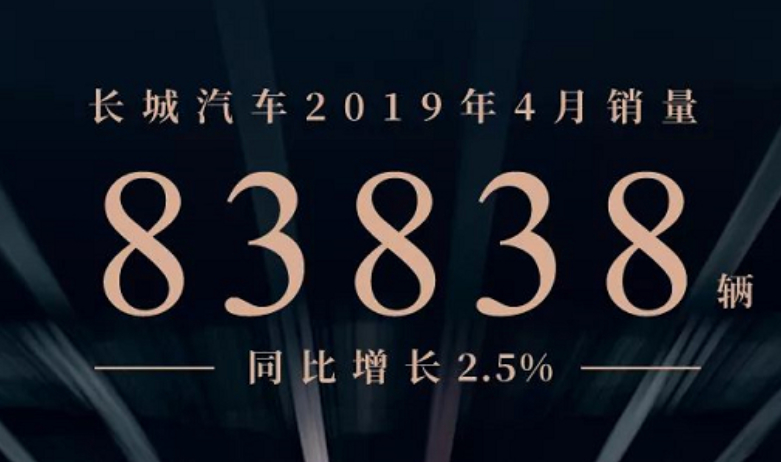 长城汽车4月销量达8.4万辆 同比增长2.5% [详细]
