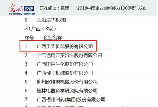 在创新领域,玉柴又跻身了一个重量级榜单
