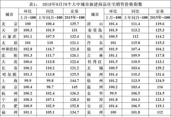 9月70城房价数据:一线城市商品住宅销售价格环比下降
