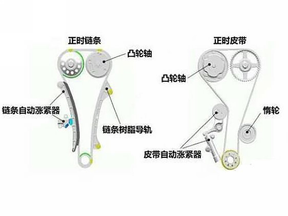 配气机构可从不同角度来分类。按气门的布置分为气门顶置和气门侧置式;按凸轮轴的布置位置分为下置式、中置式和上置式;按曲轴和凸轮轴的传动方式分为齿轮传动式、链条传动式和皮带传动式;按每气缸气门数目分,有二气门式和四气门式等。