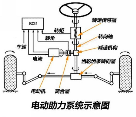 电动助力转向系统,即EPS,是英文Electric Power Steering的缩写。该系统由电动助力机直接提供转向助力,省去了液压动力转向系统所必需的动力转向油泵、软管、液压油、传送带和装于发动机上的皮带轮。