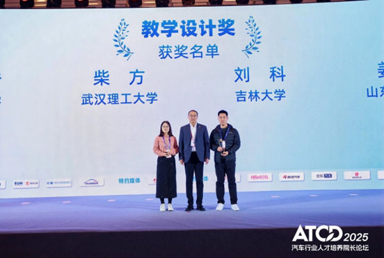 吉林大学汽车工程学院院长朱冰为教学设计奖获奖教师代表颁奖