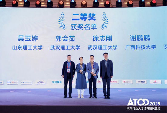 中国汽车工程学会会士、清华大学车辆与运载学院院长王建强为二等奖获奖教师代表颁奖