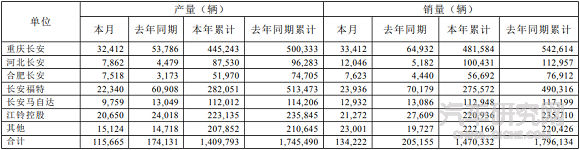 长安汽车发布8月份产销快报