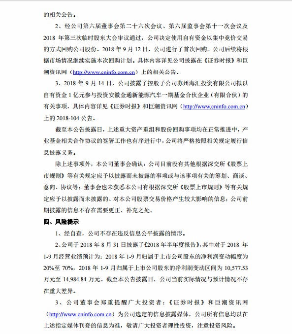 新海宜9月13日晚公告,公司控股子公司海汇投资拟以自有资金1亿元与安徽省三重一创产业发展基金有限公司、合肥国轩高科动力能源有限公司等合作设立安徽金通新能源汽车一期基金合伙企业(有限合伙),基金规模拟为16.16亿元,设立的目的是侧重支持成长期、成熟期企业发展;侧重对接安徽省战略性新兴产业集聚发展基地、试验基地,重点支持战略性新兴产业链核心环节的重点企业、重大项目。