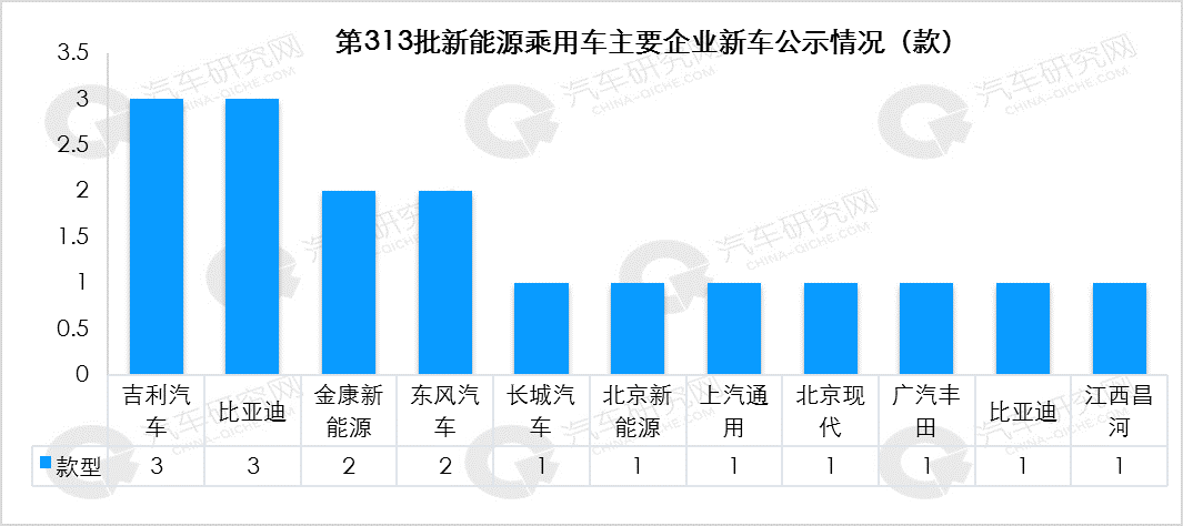 本次申报的新产品中,新能源乘用车总计24款,本次公告的新能源乘用车中,吉利及比亚迪申报数量最多,有3款车型,金康与东风有两款。