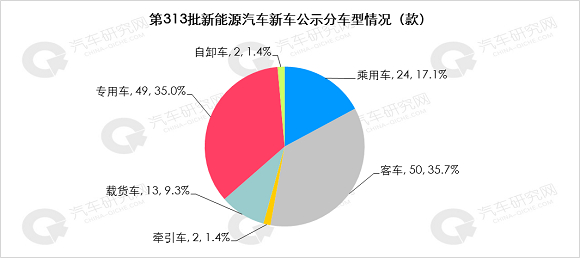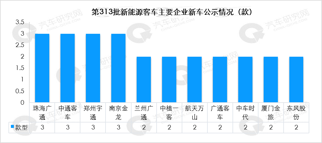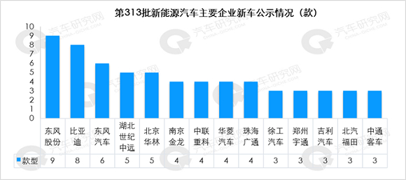 新能源客车方面,第313批总计50款车型申报,从总量来看,新能源客车新车款数逐批减少,本批公示较之上一批次减少近60%。