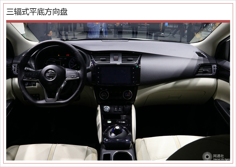 轩逸·纯电配备的多功能三辐式平底方向盘周围带有镀铬装饰点缀,前方组合式仪表设计简洁;该车中控区域触控大屏上方为空调出风口,空调控制旋钮、一键启动、座椅加热等功能按键被放置在屏幕下方,操作十分便捷。此外,这款车还搭配全新造型的旋钮式电子挡杆,科技感十足。
