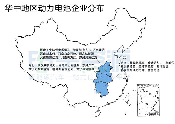 华中地区共有河南、湖南、湖北三省,共计动力电池企业23家。湖南省有8家企业,由桑顿新能源、妙盛动力、中车时代等企业领衔。湖北则有包括武汉众宇动力、骆驼集团新能源、东风汽车等在内的6家企业。河南共计有9家企业,如中航锂电(洛阳)、多氟多(焦作)、河南锂动、河南新太行等。
