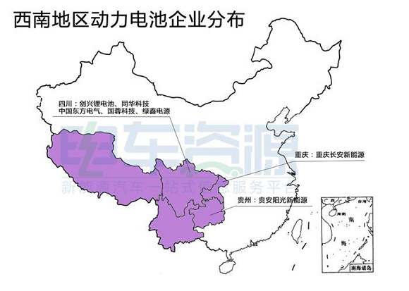 西南地区共包含四川省、贵州省、云南省、重庆市、西藏自治区5个省市,共计动力电池企业7家。其中共有5家企业位于四川,有剑兴锂电池、同华科技等,贵州、重庆各有1家动力电池企业。
