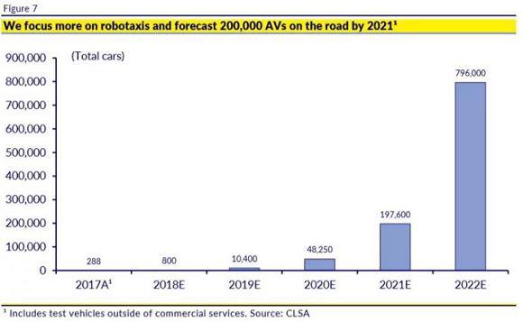 据外媒报道,法国里昂证券(CLSA)的研究显示,美国上路行驶的自动驾驶车辆数量将大幅增长。基于市场预期,市场动态将从自动驾驶路测向商业化运营转型。