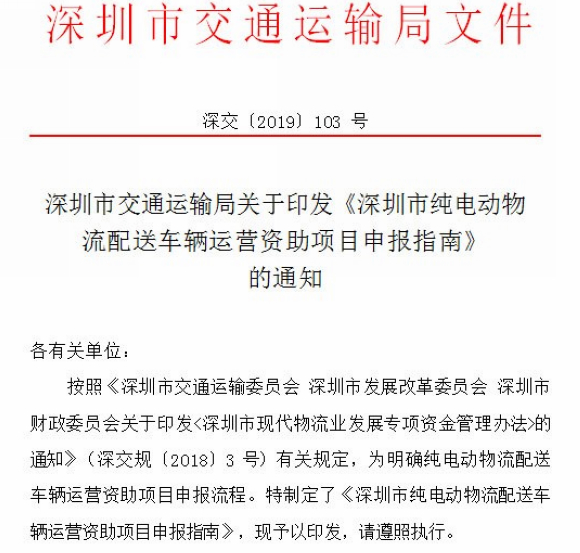 深圳:新能源运营补贴申请 单车三年资助总额不超过 7.