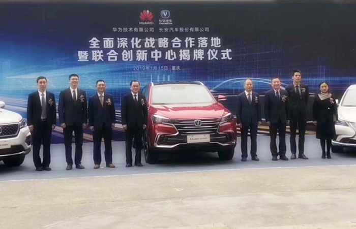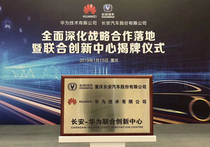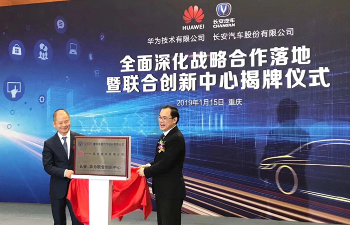 继去年7月份长安汽车与华为签署了战略合作协议后,1月15日,长安汽车和华为全面深化战略合作落地暨联合创新中心揭牌仪式在长安汽车股份有限公司举行,在5G元年到来之际,双方将在智能化、车联网和新能源等领域进行深入探索和合作。