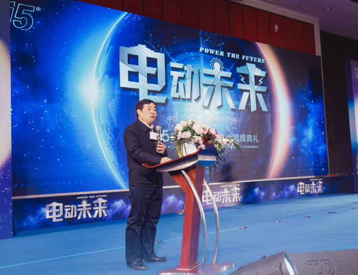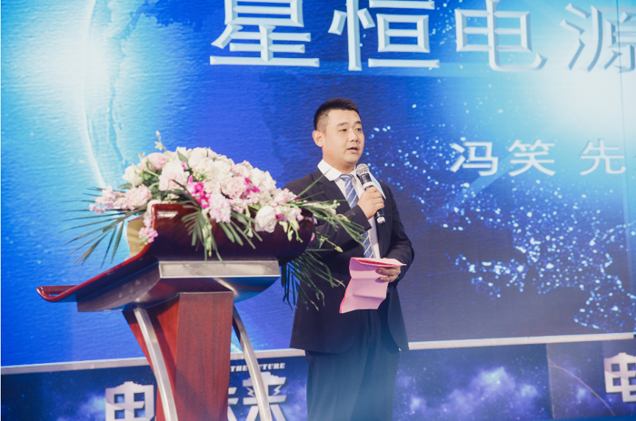 星恒电源董事长兼总裁冯笑在仪式上发表以“中流击水,奋楫者先”为主题的致辞。
