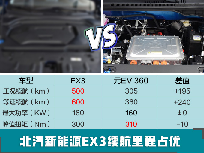 目前EX3车型已经进入预试生产阶段,在经过试生产阶段后,将迎来正式投产(SOP)。EX3搭载的永磁同步电机最大功率160kW,峰值扭矩300Nm,工况下综合续航里程500km,等速续航600km,续航里程远超同级竞品。新车长宽高分别为4200×1780×1638mm,轴距为2585mm,相比比亚迪元EV 360在轴距上占据优势。