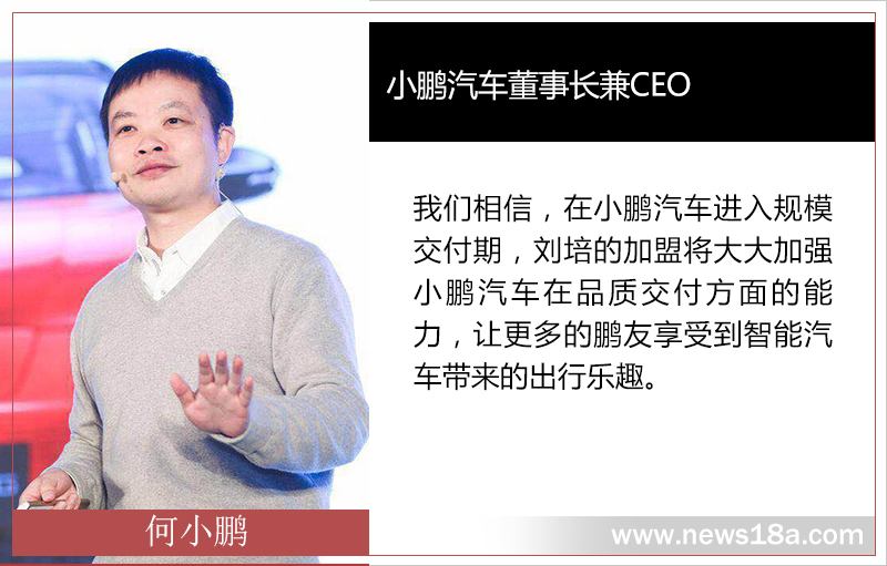 对于刘培的加盟,小鹏汽车董事长兼CEO何小鹏表示:“我们相信,在小鹏汽车进入规模交付期,刘培的加盟将大大加强小鹏汽车在品质交付方面的能力,让更多的鹏友享受到智能汽车带来的出行乐趣。”