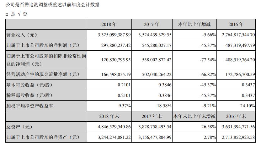 3月22日,沧州明珠发布2018年年度报告,报告期内公司营收33.25亿元,同比下降5.66%;归属于上市公司股东的净利润2.98亿元,同比下降45.37%。