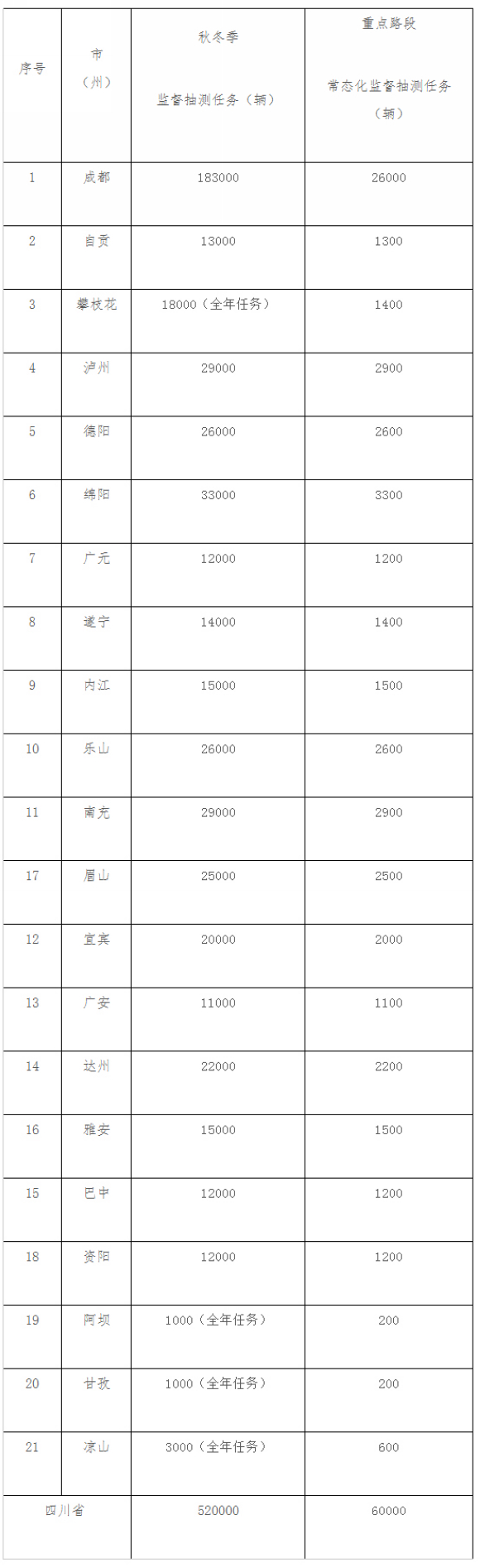 附件:各市(州)柴油车尾气排放监督抽测年度任务