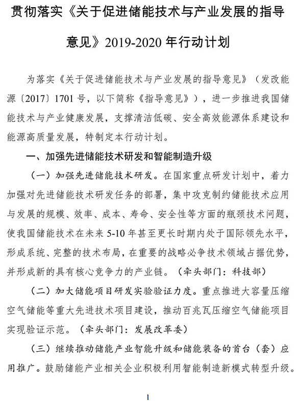 为落实《关于促进储能技术与产业发展的指导意见》(发改能源〔2017〕1701号),我们结合工作实际,制定了《贯彻落实_关于促进储能技术与产业发展的指导意见_2019-2020年行动计划》.pdf。现印发你们,请按照相关政策措施扎实开展工作。