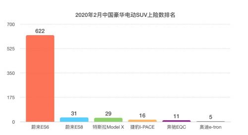 在2月豪华中型SUV上险数中,蔚来ES6 仅次于BBA。