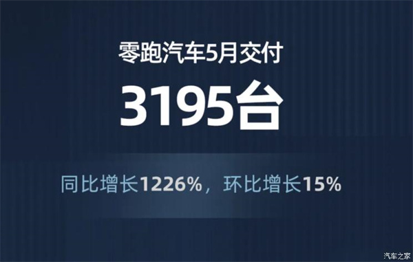 日前,零跑汽车官方公布了5月份的交付量。其5月份共交付新车3195辆,同比增长1226%,环比增长15%。