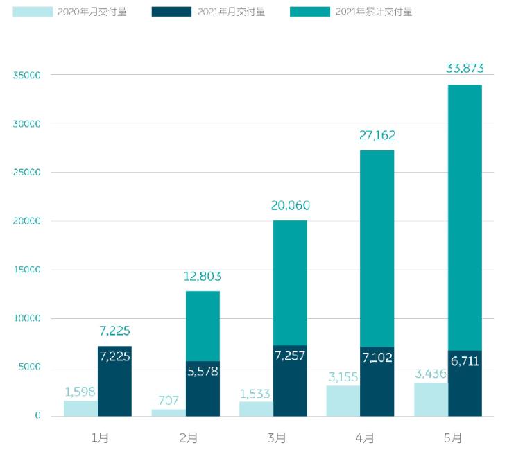 蔚来最新交付成绩新鲜出炉。6月1日,蔚来宣布5月共交付整车6711辆,同比增长95.3%。截至2021年5月31日,蔚来累计完成交付109514辆。