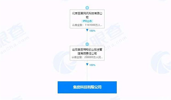 股权穿透显示,集度科技是由达孜县百瑞翔创业投资管理有限责任公司全资控股,而后者则是北京百度网讯科技有限公司全资子公司。