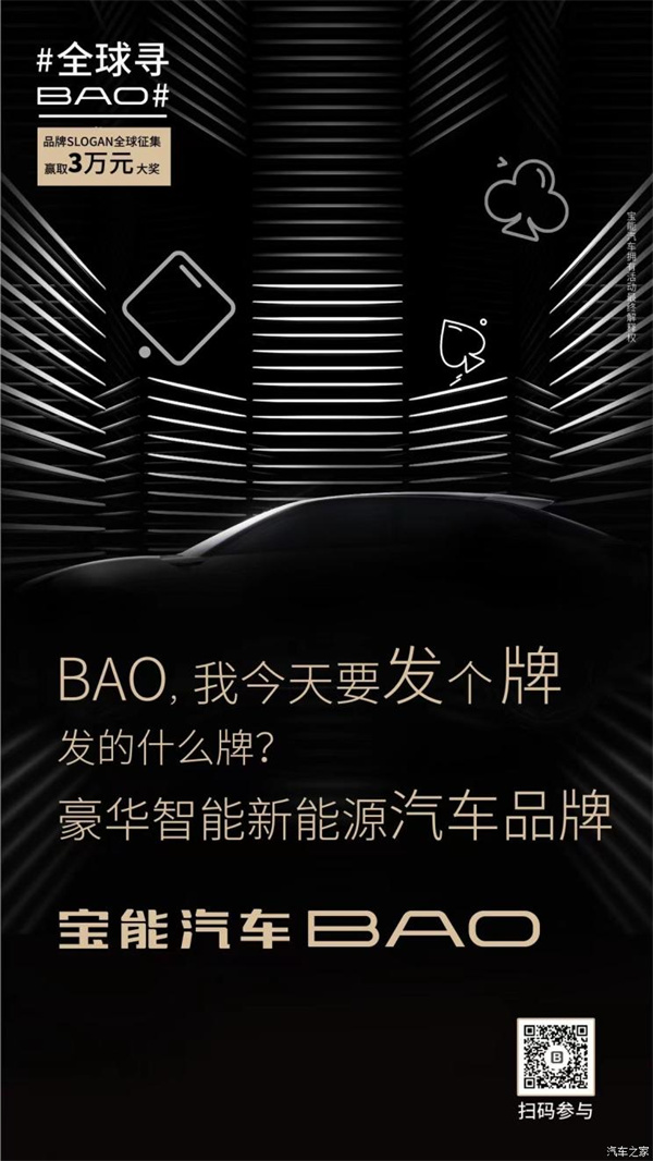 日前,宝能汽车官方发布了全新汽车品牌——BAO。该品牌将聚焦打造豪华智能新能源汽车,定位将高于观致汽车。据悉,全新品牌将在今年年内发布首款纯电动SUV,今后五年还有至少16款新车型。在发布全新品牌的同时,宝能汽车也向网友发起slogan征集,奖金3万元。