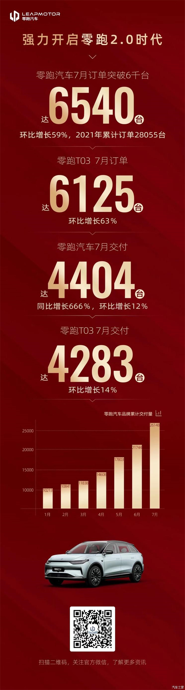 订单达6540台 零跑汽车7月销量数据