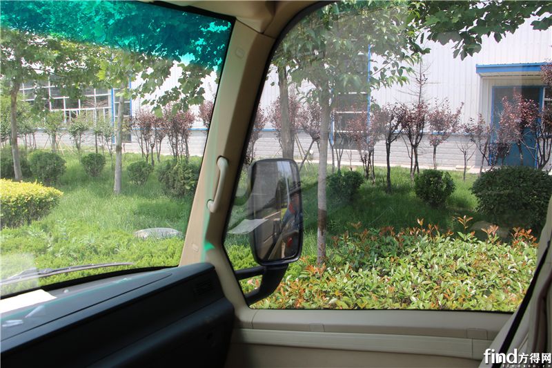 驾驶区右侧,采用一体成型大窗设计,视野宽阔,有助于驾驶员观察远离一侧的路面情况。