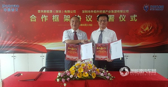 2018年8月10日,普天新能源(深圳)有限公司(以下简称“普天新能源深圳公司”)与深圳市升阳升环境产业集团有限公司(以下简称“升阳升”)举行合作签约仪式,双方确定建立合作伙伴关系,将依托彼此优势协同努力,推动深圳市环卫车纯电动化,助力深圳生态环境建设,籍此逐步建成深圳市新能源纯电动环卫车充维一体化基础设施网络,为全国其他城市相同领域的纯电动化提供良好的示范推广案例。