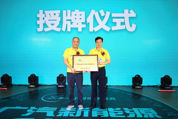 hours体验中心正式亮相,广汽新能源汽车有限公司董事、总经理古惠南到场亲自授牌。据悉,广汽品牌旗下新能源车型GE3