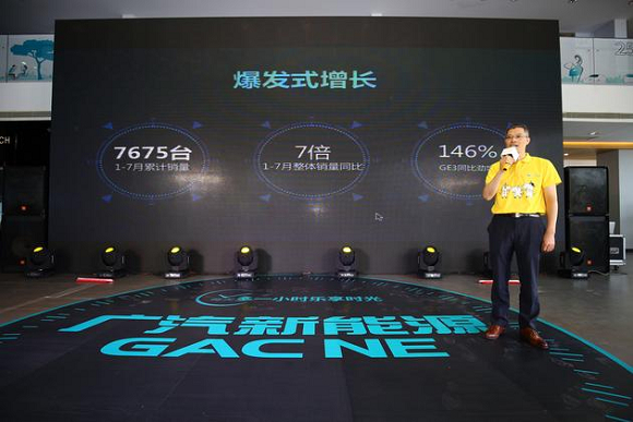 2018年1-7月,广汽新能源累计销量7657台,同比劲增7倍。旗下纯电专属平台首款纯电智联SUV GE3,荣登纯电SUV细分市场销冠王,GS4