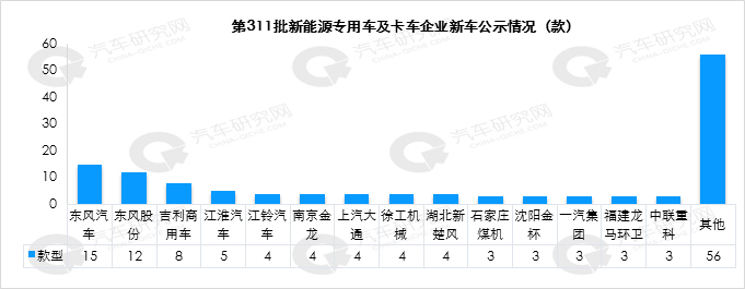 3、311批专用车及卡车新车公示分析