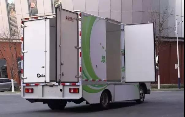 采用电动化城市物流车辆专用底盘,更大的承载能力,更多的承载空间;车架两侧动力电池布置不占用货箱空间,货箱容积最大可达23.38m3。
