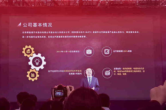 此次揭牌的公司全名为北京新能源汽车股份有限公司蓝谷动力分公司(简称蓝谷动力,BJPI),该注册成立于2017年12月13日,由北汽新能源100%控股。蓝谷动力主要经营电机控制器、电驱动、电池Pack等新能源三电的研发、设计、制造、销售等业务。
